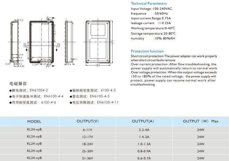 短路保護:電源適配器在短路解除時能正常工作恢復